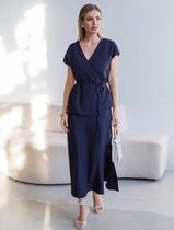 Длинное платье-рубашка с поясом и разрезами изо льна с вискозой