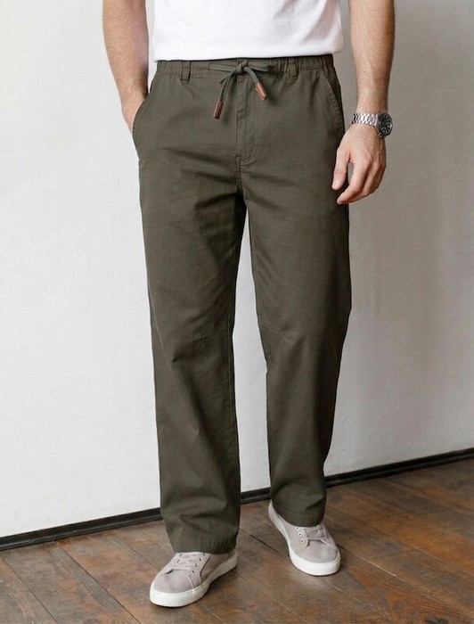 Совместные покупки Каменск-Уральский Мужская одежда Брюки — 21.04 Vilatte Брюки с поясом на резинке из эластичного твилла U24.002 темно-олив