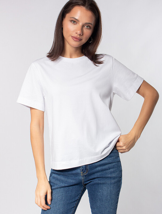 Совместные покупки Каменск-Уральский Женская одежда Футболки — 21.04 Vilatte Футболка из премиального хлопка с эластаном D49.987 белый