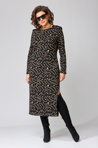 Несомненно, представленное платье привлекает к себе внимание. Казалось бы такое простое по декору, но такое замысловатое по силуэту. Верх платья умеренного объема, с округлой горловиной и небольшими короткими рукавами. А вот низ выполнен по форме баллона, за счет конструктивных линий и подрезов.