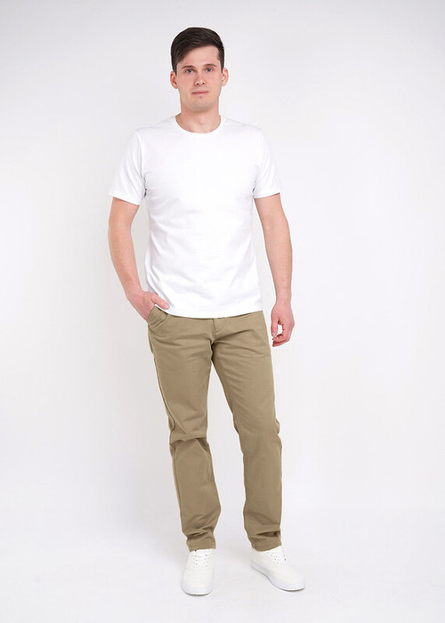 Прямые мужские хлопковые брюки средней посадки. Удобство обеспечивается за счет карманов: задних прорезных и боковых. Универсальный крой данной модели подойдет под любой повседневный образ и с футболкой и пиджаком.