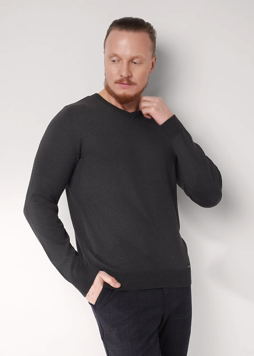Джемпер мужской из смесовой хлопковой пряжи с длинным рукавом и с V- образной горловиной. Прекрасно сохраняет тепло, комфортный в носке. Отличное решение на холодное время года. Комбинируется с джинсами или брюками.