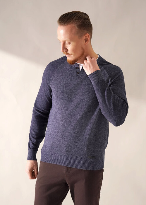 Джемпер мужской из смесовой хлопковой пряжи с длинным рукавом, планкой с иммитацией двойной горловины. Отличное решение на холодное время года. Данный джемпер можно комбинировать с брюками или джинсами. Прекрасно подойдёт для похода на работу.