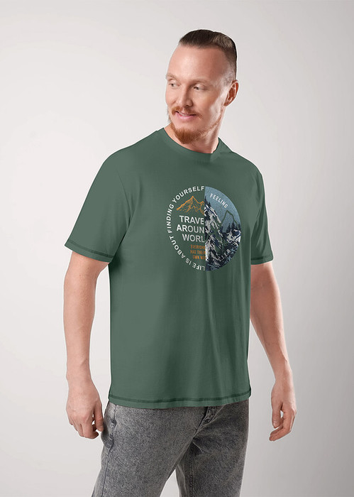 Мужская стильная футболка увеличенного объема. Модель с круглой горловиной из хлопкового полотна. Акцент изделия- крупный авторский принт и контрастные отделочные строчки, что придает ей оригинальности. Идеально подойдет для прогулок с друзьями.
