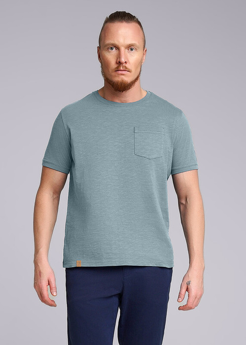Футболка мужская с округлой горловиной, коротким втачным рукавом и карманом. Данная модель прекрасно комбинируется с джинсами или шортами. Отличное решение на тёплое время года. Прекрасно подойдёт для прогулок с друзьями или поездки на отдых.