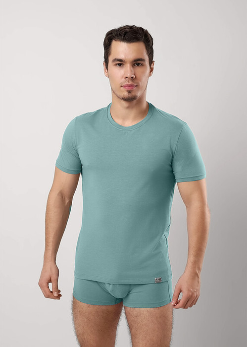 Стильная мужская футболка из модала с коротким рукавом и имиджевой нашивкой.