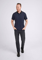 Футболка поло из фактурного полотна с содержанием хлопка, с манжетами. Функциональная планка на молнии. Модель дополнена нашивкой на спинке. Отличное решение для похода на работу и создания образа в стиле casual.