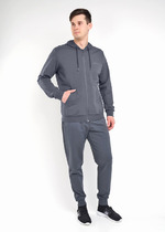 Модная куртка с капюшоном на молнии из плотного трикотажного полотна будет незаменимой вещью в гардеробе любого мужчины, благодаря функциональным карманам "кенгуру" и стильной отделке в виде нашивок.