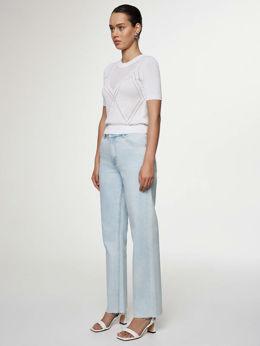 Джемпер прямого силуэта связан из тонкой шелковистой пряжи на основе вискозы красивым сочетанием ажурного переплетения и кулирной глади. Модель поможет подчеркнуть индивидуальность и сделает повседневный образ элегантным. · круглый вырез горловины· классическая линия плеч· короткие втачные рукава· прямой силуэт· гладкая и приятная к телу пряжа с вискозой· сочетание двух переплетений: ажурного и кулирной глади· сохранение формы и цвета при соблюдении рекомендаций по уходу· лаконично, женственно и элегантно.