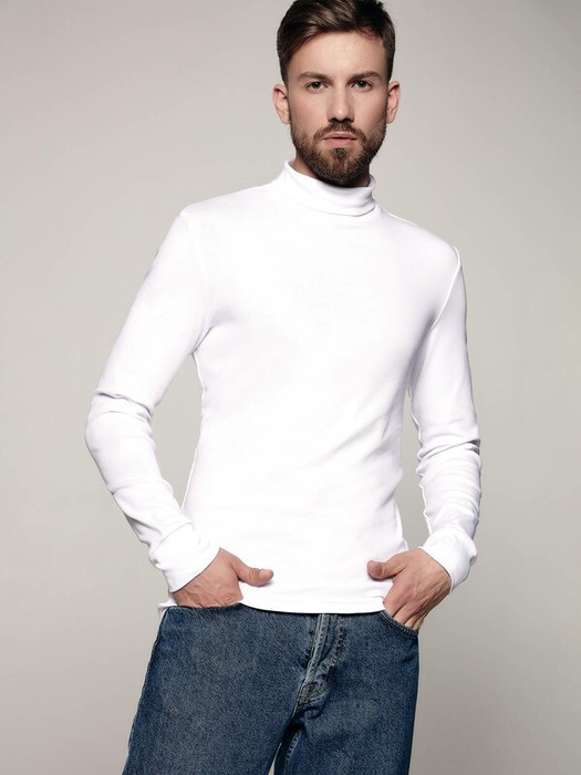 Водолазка из хлопка прилегающего качества с длинным рукавом и круглым вырезом горловины создан, чтобы согревать и дарить абсолютный комфорт.