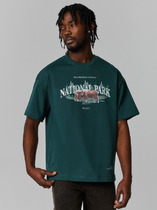 Фуфайка с коротким рукавом среднего объема, круглым вырезом горловины, которая оформлена обтачкой из рибаны, выполненная из набивного полотна.