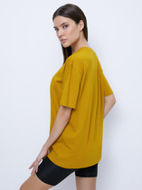 Фуфайка с коротким рукавом среднего объема, круглым вырезом горловины, которая оформлена обтачкой из рибаны, выполненная из набивного полотна.