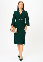 Платье женское прямое. Перед цельнокроеный, по спинке центральный шов. Горловина V-образная, обработана обтачкой из основного полотна. Рукава цельнокроеные. По бокам разрезы. Рукава и низ вподгибку.