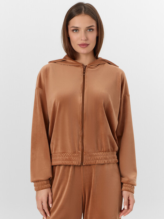 Женская домашняя толстовка из мягкого велюра — это воплощение уюта и расслабленного стиля. Модель свободного кроя с мягким капюшоном и удобной молнией создает ощущение комфорта и расслабленности. Элегантный велюр с добавлением эластана нежно обволакивает фигуру, сохраняя тепло и даря приятные тактильные ощущения.