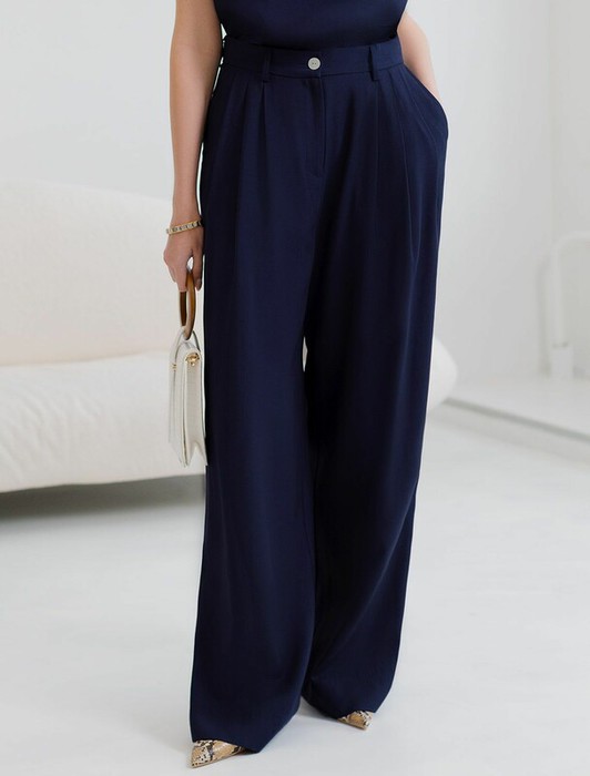 Совместные покупки Каменск-Уральский Женская одежда Брюки — 22.03 Vilatte Брюки палаццо с защипами из плотного лиоцелла D24.313 темно-синий