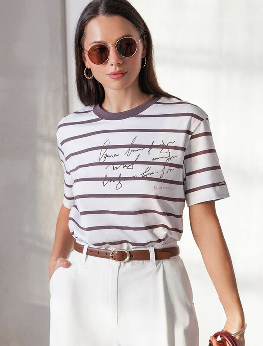 Совместные покупки Каменск-Уральский Женская одежда Футболки — 27.03 Vilatte Футболка D49.145 белый-кофе_be different