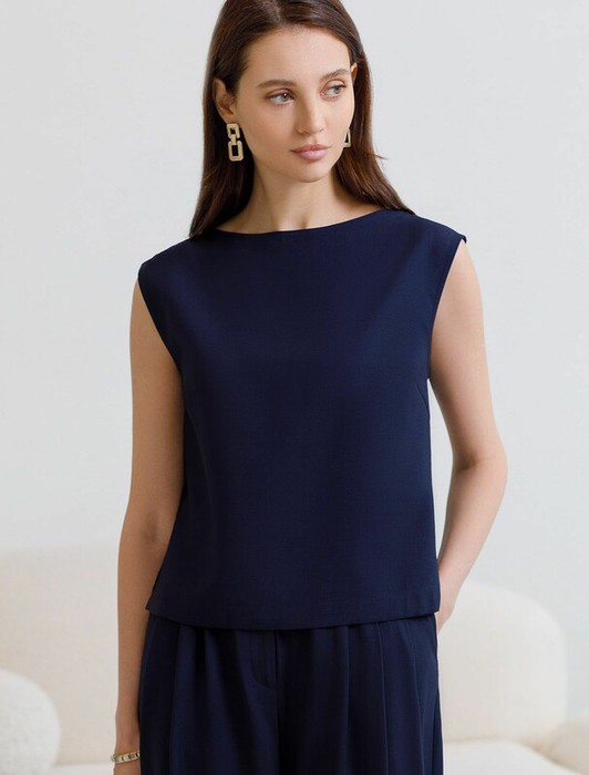 22.03 Vilatte Топ c вырезом лодочка из плотного лиоцелла D23.079 темно-синий