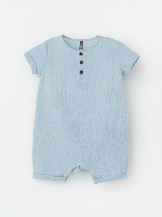 Легкий песочник для мальчика из мягкого хлопокового муслина с застежкой на пуговицы. Изделие сохраняет цвет, форму и фактуру жатости после многократных стирок.