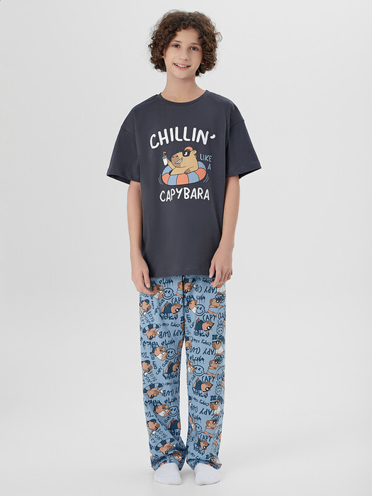 Комплект для мальчиков состоит из джемпера и брюк.