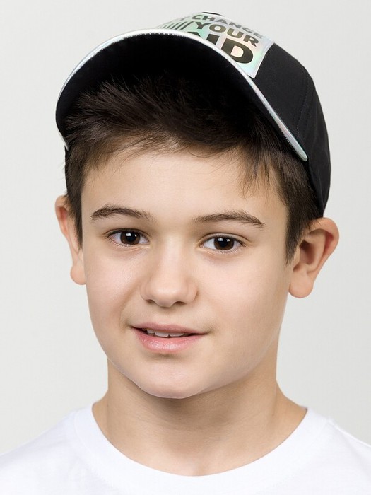 Кепка для мальчиков. Верх козырька кепки и нашивка из блестящего голографического материала. Перевод Не меняй свой разум и свое сердце.