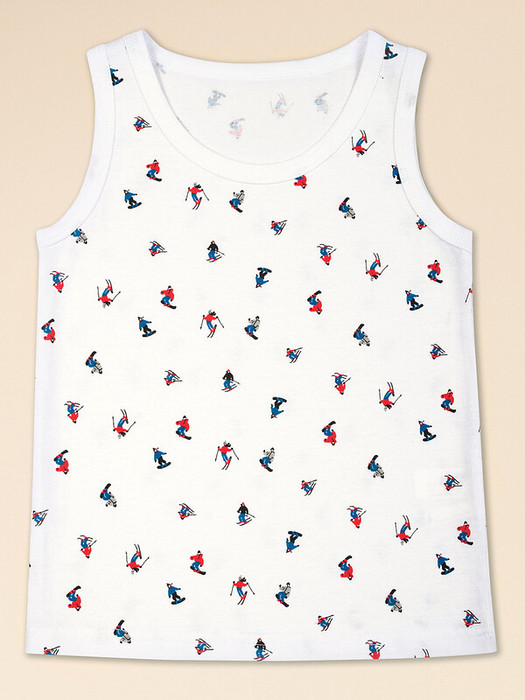 Нательная майка украшена принтом лыжника, подходит для мальчика возраста садика, школы, а также подростка.