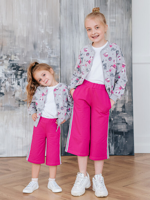 Кюлоты - широкие укороченные брюки, тренд последних сезонов. Кюлоты можно носить с футболками и пуловерами.Особенности:Эластичный поясЛампасы белого цвета по бокамЦвет фуксияХарактеристики:Материал: футер 2х ниткаСостав: 95% хлопок, 5% эластанРазмеры: 98 - 122Производитель: batik
