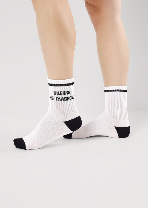 Носок для мальчиков и девочек с выделенным мысом и пяткой и с надписью Оценки не главное