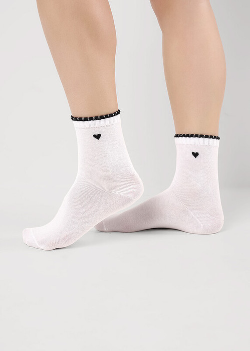 Носки для девочки с резинкой пикот, выделенным бортиком и рисункосм сердечко на паголенке