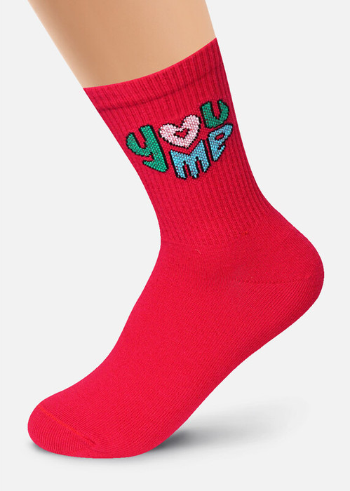 ситильные удлиненные носки для девочки с яркой надписью