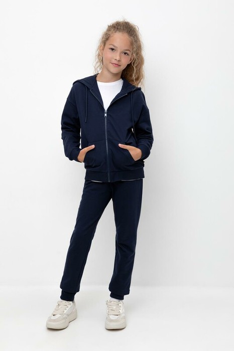 Трикотажные брюки из петельчатого футера. Эластичный пояс на резинке регулируется по ширине с помощью шнурка, по бокам два удобных кармана, внизу эластичные манжеты.