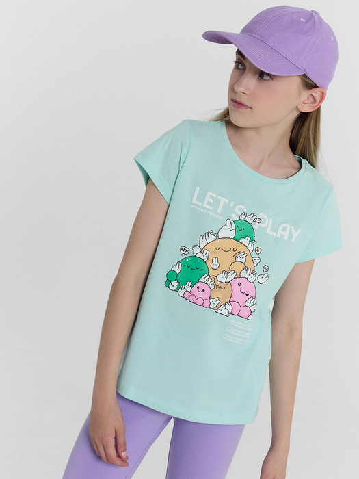 Футболка полуприлегающего силуэта. Перед и спинка цельнокроенные. Рукав втачной, короткий. Горловина круглой формы, обтачка из основного полотна. Шов притачивания обтачки закрыт бейкой из основного полотна. Низ изделия и рукваов обработан на 2-х игольной плоскошовной машине швом в подгибку.