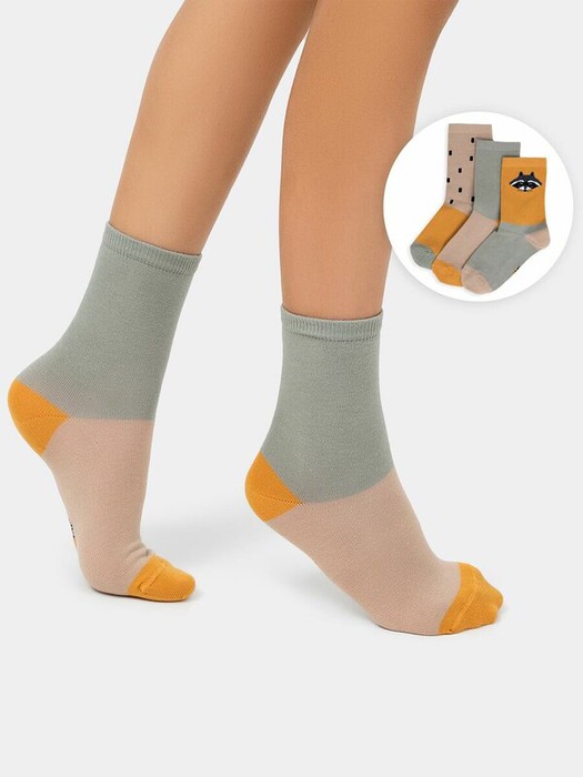 рис.2071  Мультипак из гладких детских носков с рисунком в виде енота и черточек.