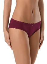 Трусы-бикини женские из эластичного хлопкового полотна. По спинке вставки из кружева. Обработка краев - окантовка. Спереди бант.