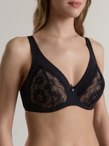 Бюстгальтер-балконет из цветочной вышивки с вертикальным членением на чашках. Бретели регулируемые, боковые детали на сетчатой подкладке для дополнительной поддержки.