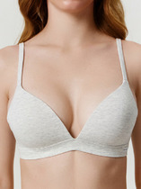 Бюстгальтер женский тишот, на 2 типе каркаса, чашки, из трикотажного полотна рибана. Чашка с вытачкой. По верхнему краю проложена отделочная строчка с верхним застилом.  Ластовица из рибаны на подкладке из монокапрона.