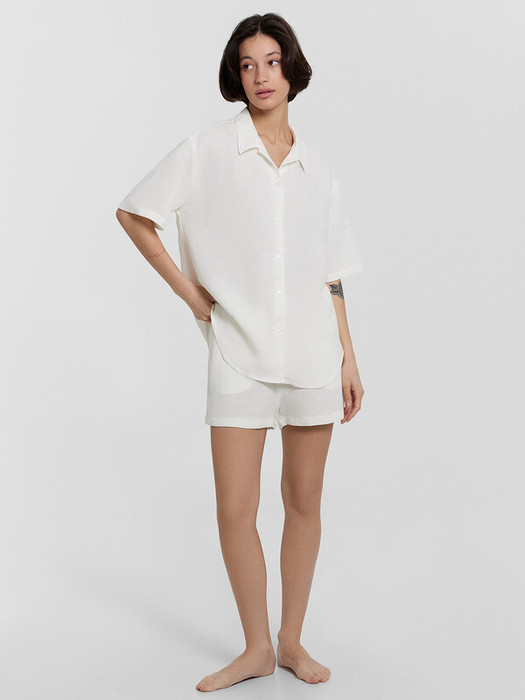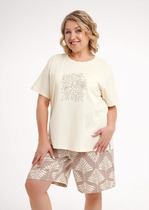 Женская пижама, выполненная из сочетания льна и вискозы. Она сочетает в себе стиль и комфорт, идеально подходя для повседневного ношения дома. Рубашка свободного силуэта с отложным воротником и короткими рукавами имеет центральную застежку на пуговицах, что обеспечивает удобство и легкость в носке. Шорты свободного кроя с высокой посадкой и карманами в боковых швах добавляют практичности и комфорта. Модель выполнена из натурального льна и вискозы. Такое сочетание материалов обеспечивает оптимальный комфорт и долговечность. Лён - это натуральный материал, который обладает отличными дышащими свойствами и дарит прохладу в жаркие дни. Вискоза, в свою очередь, добавляет мягкости и шелковистости, делая изделие особенно приятным к телу. Эта пижама станет вашим любимым выбором для уютных вечеров и расслабленного отдыха дома.