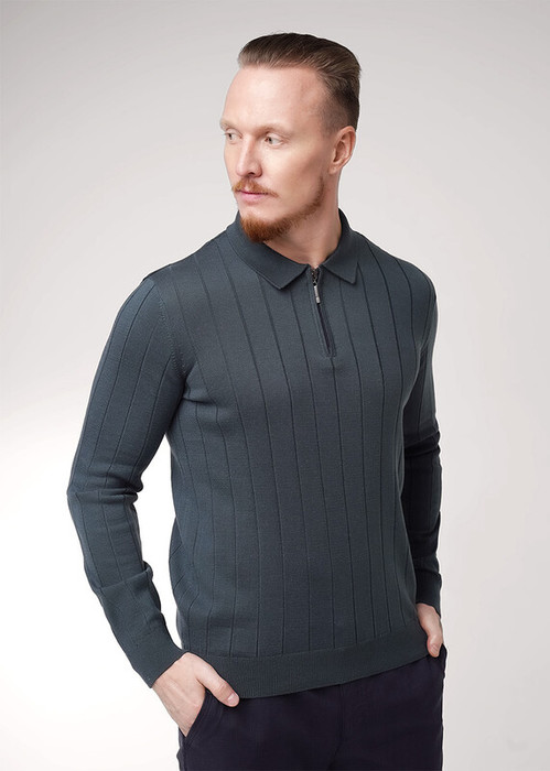 Мужская вязаная рубашка -поло на разборе с молнией и длинным рукавом. Модель связана из приятной хлопковой пряжи с добавлением акрила. Изделие можно сочетать как в классическом стиле, так и в повседневном.