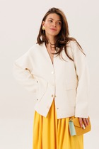 Этот женский жакет с полуприлегающим силуэтом создан для тех, кто ценит безупречный крой и внимание к деталям. V-образная горловина мягко подчеркивает линию шеи, добавляя образу изысканности.
