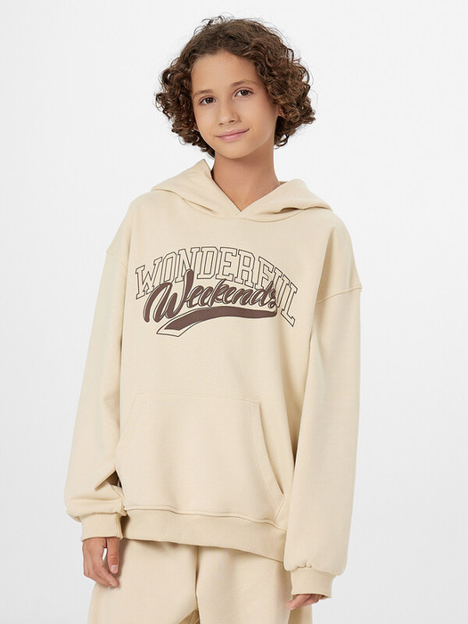 Худи оверсайз для мальчиков с надписью создано для активного образа жизни. Модель из хлопка отличается особой мягкостью и способностью пропускать воздух, что важно для подвижных детей.