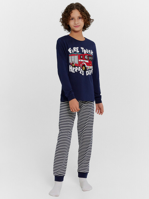 Комплект для мальчиков состоит из джемпера с длинным рукавом и брюк. Изготовлена модель из высококачественного хлопка, что обеспечит комфорт как в летний, так и в зимний период.  Пижама для подростка мальчика отлично подходит для отдыха в комфортной домашней обстановке и сна. Пижама детская — отличный подарок ребенку на любой праздник. Обязательно понравится ребенку, ведь она выполнена в трендовых цветах и украшена милыми и оригинальными рисунками. Широкий размерный и цветовой ряд. Рекомендуем!