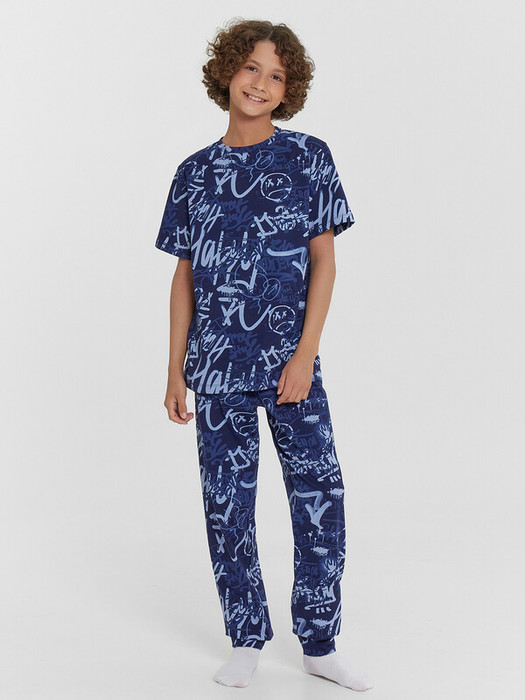 Повседневная пижама для мальчиков из высококачественного хлопка. Состоит из футболки с коротким рукавом и длинных брюк с эластичной резинкой в поясе. Брюки завершаются манжетами. Изготовлена пижама для мальчика из высококачественного натурального материала, что обеспечивает комфорт как в летний, так и в зимний период. Материал отлично тянется, хорошо впитывает влагу и быстро сохнет, не сковывает движений и не создает парникового эффекта. Отличный вариант для каждодневной носки. Пижама детская для подростка мальчика отлично подходит для отдыха в комфортной домашней обстановке и сна. В линейке много интересных расцветок, есть красивые варианты с принтами. Если вы устали от простых и незамысловатых моделей и хотите разнообразить гардероб вашего ребенка, этот вариант порадует. Такая пижама понравится всем мальчикам и подросткам, ведь она выполнена в ярких цветах и украшена рисунками. Купить пижаму детскую недорого можно у нас на сайте и в магазинах Mark Formelle!