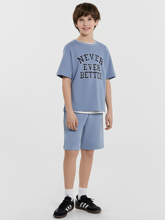 Стильный комплект для мальчиков. Изготовлен из трикотажного футера. Футболка свободного силуэта, длиной до середины бедер, с короткими рукавами и круглой горловиной. Шорты длиной до колена, с эластичной резиной в поясе  и регулировочным шнурком. Отличный выбор!