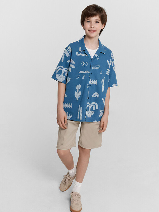 Шорты карго прямого силуэта из текстильного полотна. Посадка средняя. Длина выше колена. Пояс цельнокроеный  с эластичной тесьмой и шнуром внутри. По поясу выполнены три декоративные строчки. На передних деталях брюк настрочен один карман с клапаном, обработаны карманы с наклонным входом от боковых швов. Низ изделия обработан швом в подгибку.