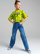 Джинсы из сверхудобного эластичного материала Loop Denim. Loop Denim имеет внешний вид премиальной джинсы, а по тактильным ощущениям мягкий и комфортный, как трикотаж. Посадка regular fit – классический крой со слегка зауженным силуэтом от колена. Комфортная посадка за счет внутренней утяжки. Эластичный пояс с тесьмой позволяет легко надевать джинсы и утягивать до идеальной посадки в зависимости от комплекции ребенка.