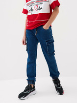Стильные джинсы для девочки. Модель с зауженным кроем Slim fit и удобной средней посадкой. Пояс на резинке с розовой декоративной завязкой. Сзади — два кармана, один из которых украшен розовым принтом. На штанинах — яркий и милый принт с изображениями кошек и следами лапок. Вся отделка — в анималистичном стиле: пояс, карманы и низ брюк декорированы чёрно-белым принтом.