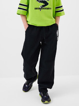 Это подростковые джинсы свободного покроя с прямыми и широкими штанинами для мальчика подростка. Выполнены из плотного хлопкового денима. Джинсы застёгиваются на молнию и болт, внутри пояса есть эластичная лента с пуговицей для регулировки. Боковые и задние карманы. На заднем кармане размещён декоративный шеврон с белым принтом.