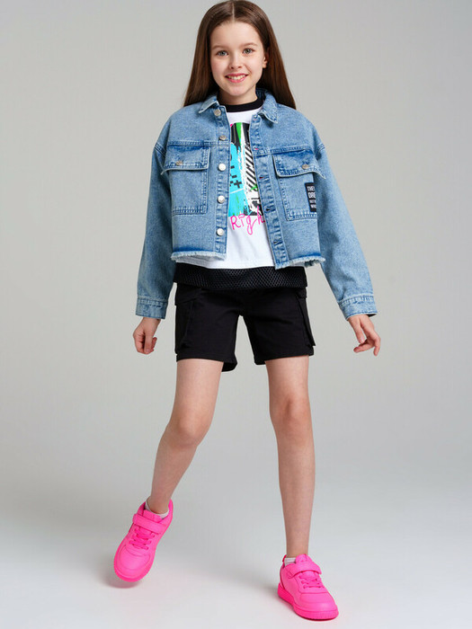 30.03 PlayToday Куртка текстильная джинсовая для девочек 12421216