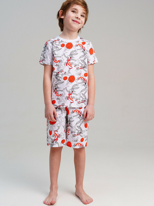 Пижама детская для мальчика. Футболка и шорты из эластичного и приятного на ощупь трикотажа. Шорты на резинке со шнурком. Высокое содержание хлопка 95%. Благодаря наличию эластана в составе ткани изделие держит форму и меньше мнется.