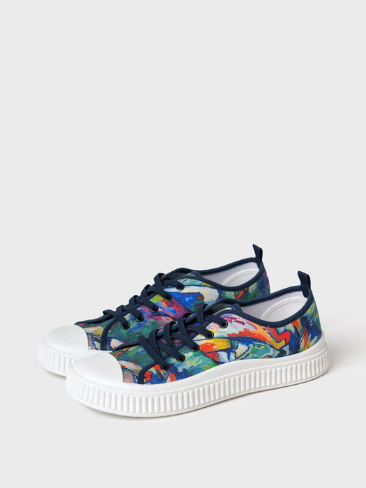Текстильные кеды для девочки подростка из коллаборации с Третьяковской галереей. Принт - фрагмент картины Василия Кандинского, Импровизация 7, 1910. Резиновые шнурки удобны при обувании. Кеды имеют текстильную подкладку с высоким содержанием хлопка 90%. Съемная хлопковая стелька. Подошва выполнена из легкого и гибкого ПВХ и имеет защиту носочной части.