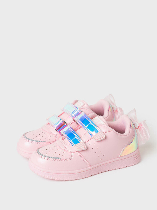 Оригинальные кеды для девочек с огромным бантом из органзы сзади. При желании бант можно снять. Две удобные застежки липучки позволяют ребенку обувать кроссовки самостоятельно. Кроссовки выполнены из искусственной кожи, по своим свойствам схожим с натуральной кожей. В обуви есть светоотражающие элементы. В носочной части обуви стоит текстильная подкладка c высоким содержанием хлопка 80%, которая обладает высокой гигроскопичностью. В пяточной части обуви текстильная подкладка обладает хорошей износостойкостью. Профилированная съемная стелька из натуральной кожи с анатомической формой подсводника обеспечивает правильную нагрузку на стопу. Формоустойчивый задник поддерживает стопу в правильном положении. Эргономичная форма колодки обеспечивает правильное формирование стопы ребенка. Подошва из ТПР гибкая, не скользит и устойчива к истиранию.